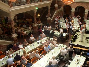 | Tom (t.v.) og Jørgen ønsker velkommen. | Den vakre salen på Læssøesgades skole med en utrolig akustikk. |