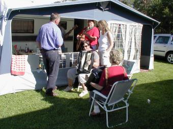 | Buskspill på campingplassen | Mer campingbusk, deler av Trysil 2rader'n varmer opp til kveldens spilleøkt. |
