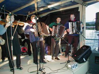 | Kalle og Ragnar Johnsen kalte seg "Father & Son". Litt stive fingre skyldtes vinden på brygga som løyet litt utpå kvelden. | Populært med bryggedans. |