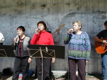 | Søsknene Husdal under konserten lørdag formiddag. | Søstrene Husdal. Ingen riktig Elgå-treff uten disse. |