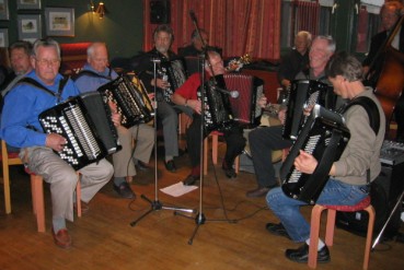 | Einar Oppegård og Arnljot Budeng hadde en fin framføring av "Orfeum Intermezzo" av Chr. Liebakk, faktisk så bra at de måtte fremføre stykket 2 ganger etter ønske fra publikum. | Et klippe utøvere fra Elverum Trekkspillklubb som det svingte bra av. Reinlenderen "På Buball", komponert av Arvid Ottosen i 60-årene, tolket de meget bra. Komponisten var selv tilstede og høstet stor applaus fra publikum. |