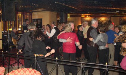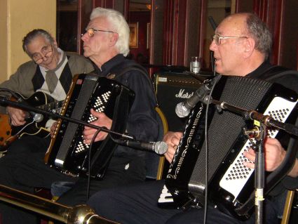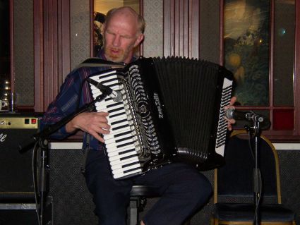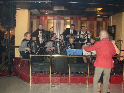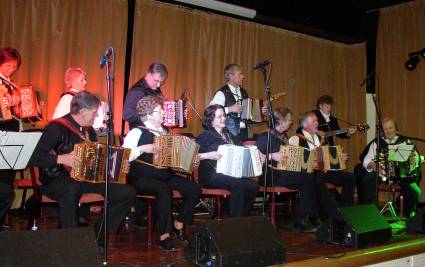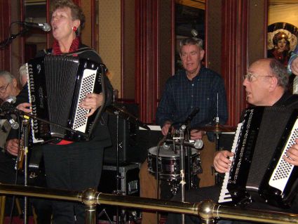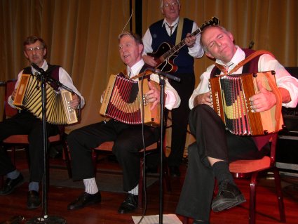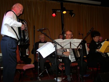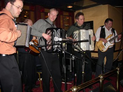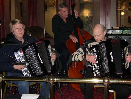 | Halden Trekkspillklubb fikk så vidt plass på scenen i baren. Det hjelper kanskje på "tette" akkorder ;-) ? | Danselystne hadde i alle fall ikke noe å klage over når det gjaldt musikkvariasjon. |