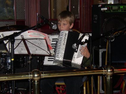 | Arrangementets desidert yngste deltaker, Roymond Olsen (10 år) fra Horten, åpnet konserten i baren på hotellet på lørdag slik han har gjort de 2 foregående år. | Kenneth Larsen (11 år) fra Oslo deltok på treffet for første gang, og stilte velvillig også på spilling under konserten. Vi håper å høre mer til disse unge herrer i fremtiden. |