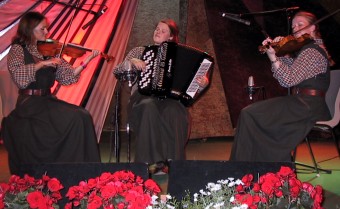 | I lagspill-toppen var det bare gudbrandsdøler. Vågå spelemannslag (bildet) med forrige leder av Landslaget for Spelemenn (Trond Ole Haug) gikk av med seieren foran Sør-Fron Spelemannslag.Men Sør-Fron fikk en gullmedalje hjem til bygda i åpen klasse. | De unge jentene i "Krøklun" sjarmerte dommerne med morsomme arrangementer av slåtter ispedd med blant annet barnesanger. De stakk av med seieren i "Open klasse". |