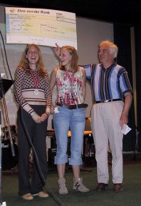 | Kurt Samuelsen fra Tromsø spilte på jazzkroen. | Ida Løvli Hidle (t.v.) og Live Berger Brekke mottok årets Akre-pris som deles ut hvert år under NM av et legat for Ottar E. Akre. |