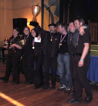 | Hilmars vant klassen for Gammeldans grupper med 121 poeng. Gruppen er under ledelse av Syver Olstad. De har dermed første napp i vandrepokalen (t.h.) som trekkspillforbundet har satt opp. | ||||||