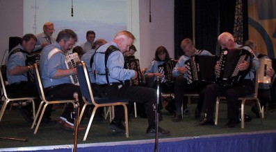 | Tydal Trekkspillklubb i aksjon. De hadde en knivskarp konkurranse med Selbu Trekkspillklubb, men Selbu måtte nøye seg med en 2. plass. | Tydal Trekkspillklubb vant også i år klassen for Gammeldans orkester div. I med 123 poeng. Klubbens komp ble hedret som det beste under hele NM! |