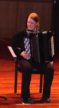 | Oddný Bjørgvinsdottir fremførte de 4 første satsene fra Barnesuite nr. 1 av Semjonov. | Mona Holm var eneste utøver på torader og trollbandt oss med Lille Ole av Tom Willy Rustad. Hun deltok også på trekkspill. Mona er dessuten den første studenten ved NMH som har torader som hovedinstrument. |