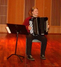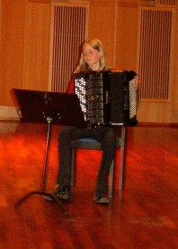 Jon Faukstad, professor ved NMH, presenterte så den neste utøveren på akkordeon, Oddný Bjørgvinsdottir, en islandsk 1. års-student som valgte å starte med ”Tre nocturner” av Anders Grøthe, et riktig melodisk og vakkert stykke i 3 satser. Faukstad kunne fortelle at denne komposisjonen var pliktstykke i juniorklassen i Nordisk mesterskap i 1976, den gang avviklet i Den norske opera. Oddný avsluttet med ”Preludium og fuge nr. 2, c-moll fra ”Wohltemperiertes Klavier I” av J.S. Bach.