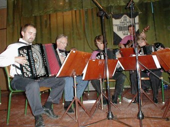 | NM arrangørene, Ringerike Trekkspillklubb, under ledelse av Steinar Eriksen tok turen helt til Østfold og viste at de ikke hadde slitt seg helt ut på NM-arrangementet i sommer. | Etter konserten, ble det et lite sceneskifte fra konsertoppsett til småbord og danseplass. |