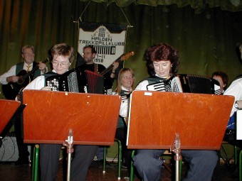 | Strømmen Trekkspillklubb. Her ser vi Kjell Harald Langhaug til venstre og Frank Andresen (leder) til høyre. | Strømmen TK har et stort antall av kvinnelige trekkspillere. Bente Midtsveen til venstre og Monika Anderson til høyre. |