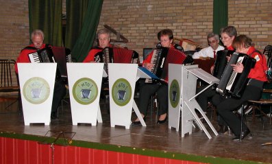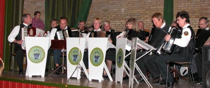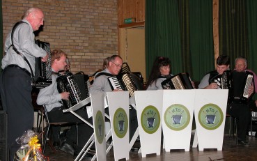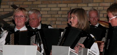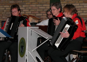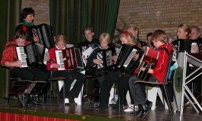 | Enebakk Trekkspillklubb har blitt færre i antall de siste årene, men like vakkert framførte de "Anna Monicas vals" av Sven Henrikson, arr. Per Olav Green og fulgte opp med "El Choclo" av G. Villodo, arr. Arnstein Sørumsbrenden. | Enebakk TKs "kvinnelige" avdeling. |