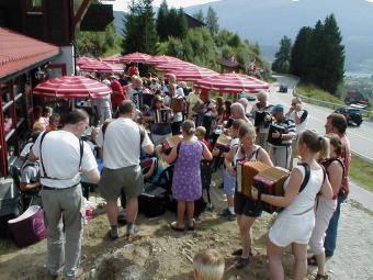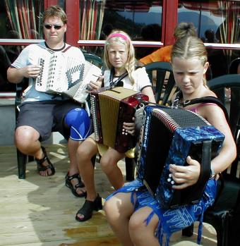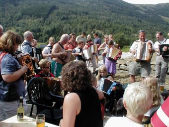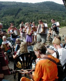 | Hva hører vel mer naturlig sammen enn sol, sommer, musikk og fin natur ? | Bjørn Ravnestad med flere elever. Ravnestad er også en av medlemmene i "Sjetraddana" som fikk delt førsteplass i klassen for gammeldans grupper under NM på trekkspill 2002 i Hønefoss. Sjekk her. |