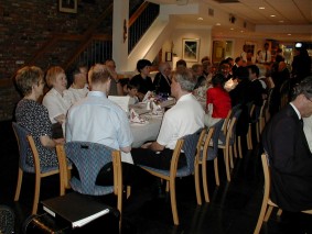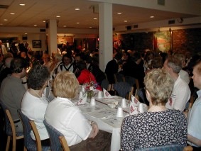 | Hele kirkerommet var dekket med langbord til fest. | Og fullt ble det... |