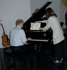 | Ikke nok med at han måtte spille orgel, Roar ble plutselig spurt av ingen ringere enn Anne Lise Gjøstøl om han ville akkopagnere hennes innslag. Randi Torgersen måtte trå til som "noteblader". | Anne Lise Gjøstøl |