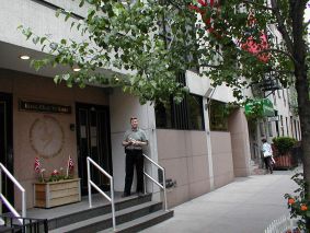 Ikke lett å finne Sjømannskirken på Manhatten hvis man ikke vet at den ligger mellom 1st og 2nd Avenue. Det norske flagget er imidlertid alltid på plass (se bak løvtreet) selv om det ikke skulle være 17. mai.