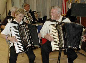 | Vasastjärnan Folkdancers. | Han spilte munnspill for oss ved et bord hver dag under frokosten. Spillegleden varer tydeligvis livet ut for en ekte ildsjel. |