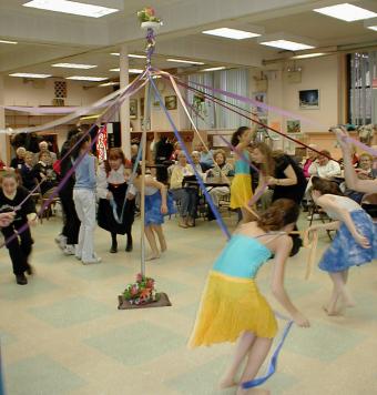 | En smakebit på mer av kulturlivet i Brooklyn. Her en dansegruppe med jenter som viste oss flere internasjonale dansestiler. | Til slutt skulle Mai-stangen pyntes. |