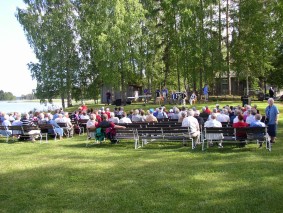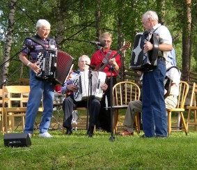 Arvika Dragspelsklubb arrangerte årets Bälgaspel på Skutboudden, Brunskog ca. 2 mil sørøst for Arvika. På "Gammelvala" ved sjøen Värmeln er det 4. året treffet har sitt tilholdssted. "Gammelvala" betyr "den gamle verden" og på Brunskog Hembygdsgård ligger det et 30 talls bygninger der det vanligvis råder full aktivitet slik som i gamle dager. Fredagskvelden ble startet med et felles grillparty med påfølgende dans på Logen. Været viste seg fra sin beste side og utescenen var godt besøkt lørdag ettermiddag med variert underholdning. I alt kunne vi telle rundt 10 ulike klubber og grupper, deriblant Jessheim Trekkspillklubb og Alvar Dahl fra Norge. Lørdagskvelden var det dans både på Logen og i "Grötköket" til over midnatt. |