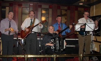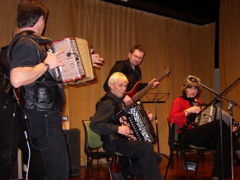 | Birger Østby (t.v.) hadde komponert en egen vals til ære for "treffgeneral" Synnøve Fjeld - "Synnøves vals". | Paul Maurud (trekkspill) og gjengen "Pauls" er stadig vekk å høre på Fagernestreffene. |