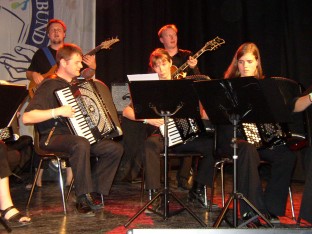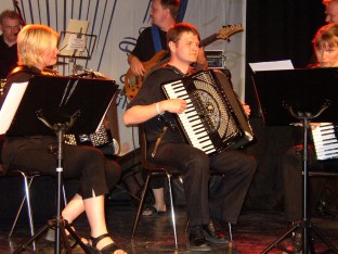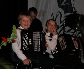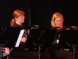| 5. plass (105 p): Tromsø Trekkspillklubb. Her gleder tydeligvis den ene seg, mens sidemannen er litt mer nervøs. |