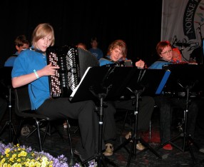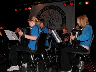 | 3. plass (118 p): Kun 1 poeng bak Nordstrømmen/ Velfjord Trekkspillklubb kom Bærum og Oslo Fisarmoniske orkester. Live Berger Brekke (t.v.) var forøvrig eneste deltaker i solistklassen over 18 år. | Bærum og Oslo Fisarmoniske orkester |