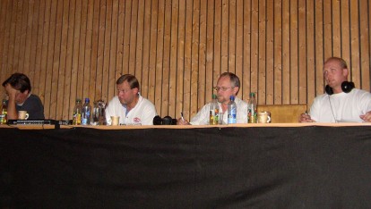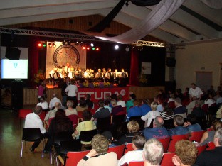 | Noen fra dommerpanelet. | Storsalen "Aunekammen" i Verran Kultur- og Næringspark. Sett fra dommernes vinkel. |