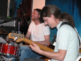 Thomas Hvale (trommer) og Finn Guttormsen (bass) hadde det like fornøyelig som publikum. |