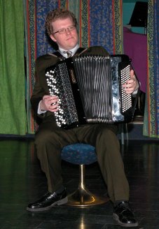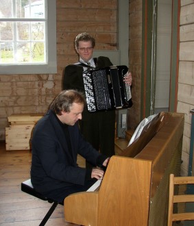 © fo2:2re Jon Inge Sigerland er organist i Selje Kyrkje, men avsluttet konserten med "Konsertsuite for trekkspill og klaver" med titler fra eventyrverdenen i 7 satser av tsjekkeren Vaclav Trojan sammen med Håvard Svendsrud. |