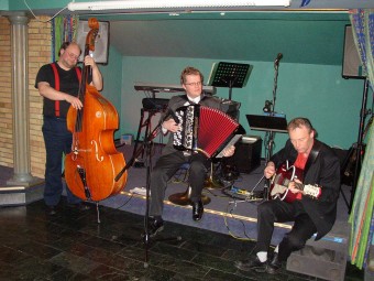 | Håvard Svendsruds trio bestående av Bjørn Arild Aksnes (bass), Håvard Svendsrud (trekkspill) og Tor Bekkelund (gitar). Trioen spilte til dans hele fredagskvelden bare avløst av hotellets husorkester. |