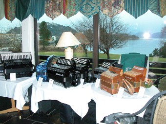 | 2RE-2NE-R2 3KKSPILLTROLL ANS var invitert til å delta på trekkspilltreffet med trekkspillutstilling, noe som skapte stor stemning blant treffdeltakerne og andre hotellgjester som i utgangspunktet ikke visste noe om arrangementet. | Og sjelden har vi blitt tildelt utstillingslokale i så vakre omgivelser! |