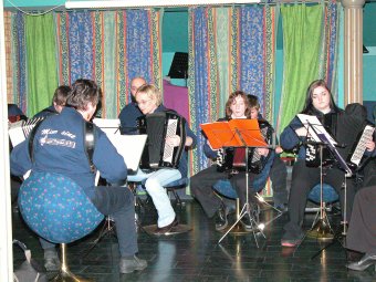 | Håvard og Karen Svendsrud m/ komp. bidro med duetter på hotellets konsert. | "3kkspiltroll og de gode hjelperne" hjalp til med dansespilling på lørdagskvelden. Flere av gruppens medlemmer er å finne i Gamle Aker Spelemannslag til vanlig. |
