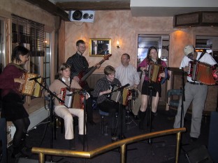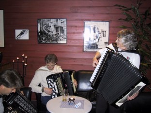 | Liv Rønningen kan mer enn å spille trekkspill og arrangere. Hun dukket også opp på scenen da det svingte som mest og beviste at hun også kan synge. | "Geir Harrys" gruppe har startet opp igjen og låt veldig bra. |