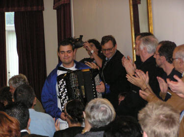 | Ingen tvil om at Coupe Mondiale foregikk i byen. | Nr. 2 f.v. Kevin Friedrich, president i Confédération Internationale des Accordéonistes (CIA) |