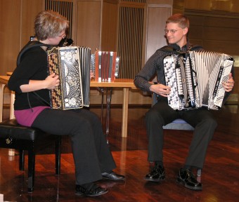 Litt info fra professor Jon Faukstad om masterstudiet ved NMH: Det som før het hovedfagsstudiet, heter nå masterstudium. I løpet av masterstudiet, som er på to år, skal studenten gjennomføre et visst antall konserter – masterkonserter. De to siste av disse heter eksamenskonserter og skal bedømmes av jury. Den nest siste blir det gjort opptak av, og den blir med i vurderingsgrunnlaget sammen med den endelige og avsluttende eksamenskonserten, der hele juryen er til stede på konserten. Ingunn går på såkalt Mastergradsstudium med fordypning, som betyr at hun i tillegg til konsertene skal skrive en avhandling om trekkspilltradisjoner i Hallingdal. Både avhandlingen og de to eksamenskonsertene blir vurdert samlet. Denne konserten var altså en vanlig masterkonsert, som bare skal gjennomføres og bestås. |