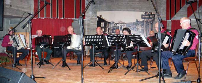 Kongsberg trekkspillklubb (A-orkester) med leder Kjell Traaen til venstre |