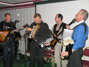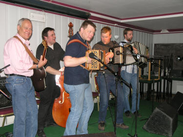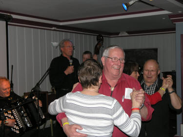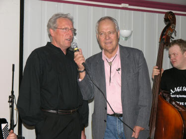 | Konferansier Ivar T. Dagenborg (t.h.) | Randsfjordtreffet fikk i året sin egen sang her framført av Ole Ellefsæter som forsanger. |