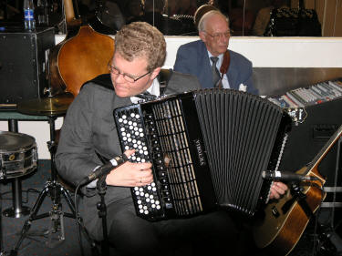 | Arnstein Johansen - på bildet fremdeles 79 år ;-) | Arnstein Johansen i swingduett med Sigurd Johannessen (t.h.). |