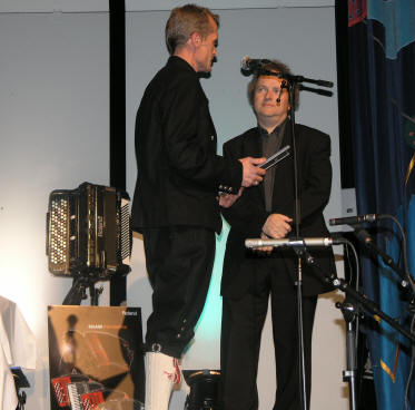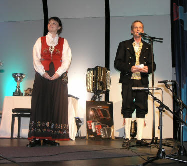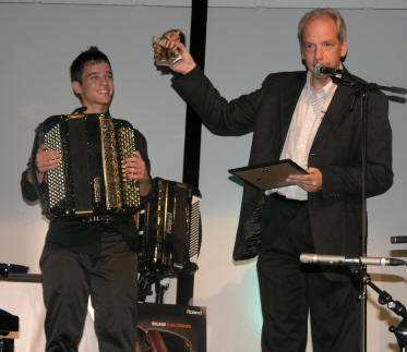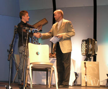 | Tore A. Ødegård delte ut prispengene sponset av 2RE-2NE-R2 3KKSPILLTROLL ANS til vinneren i klassen Junior Virtuoso Entertainment - Mario D' Amario fra Italia. Alle deltakere fikk forøvrig med seg et ekte, norsk "trekkspilltroll" samt diplomer. | Des Concertante Trio (Portugal) - vinner av klassen for kammermusikk |