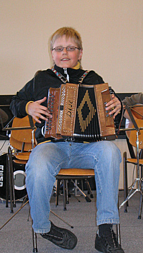 Palmehelgen arrangerte Øksnes Trekkspillklubb distriktsmesterskap på trekkspill for Nordre-Nordland krets av NTL på Myre i Vesterålen. Værgudene var på vår side denne helgen og skapte en perfekt ramme rundt et velarrangert mesterskap. I denne kretsen starter vi med ”åpent hus” fredag ettermiddag, da de fleste deltakerne kommer. Lørdag er det konkurranser fra kl. 10.00 til ca. kl. 17.00. På kvelden er det fest med middag, premieutdeling og dans. Helgen avsluttes med matiné søndag fra kl. 12.00 til kl.14.00. Her får vi høre vinnerne av de ulike klassene i tillegg til musikalsk innslag fra dommerpanelet. Det vil kreve for mange ord å beskrive de allsidige musikalske inntrykkene man sitter igjen med etter helgen, og påsken vil nok gå med til å fordøye dem. Jeg velger likevel å nevne noen spesielt. Lars Hasselberg Petersen fra Andøy var eneste solist i klassen durspill t.o.m. 14 år og må nok sies å være arrangementets største sjarmør! Under søndagens matiné fikk han med seg helgens mye brukte komp på trommer og bass samt sin far på gitar. De fremførte både vals, tango, boogie og noen fornøyelige kommentarer! Rune Larsen forkledd som ”den gamle trekkspillhulken” får stå som det andre ytterpunktet, og også han hadde med seg det solide kompet bestående av Jan Olsen på trommer og Oddmund Finnseth på bass. Det ble mye latter i salen da denne humoristiske skikkelsen dukket opp i ”åpen klasse”. Rune er allsidig og behersker mange stilarter, noe han også viste i et livlig show under matinéen. Arrangørklubben, Øksnes Trekkspillklubb, fikk spesiell ros for sitt innslag i ”åpen klasse”. De hadde med seg Victoria Sovatkina som sang på russisk sammen med dem i et potpurri med evergreens-melodier. Denne suksessen gjentok de under matinéen. Melbu Trekkspillklubb ble stiftet i fjor og deltok for første gang på DM. Dette var en sprudlende gjeng med stort pågangsmot som antagelig blir vertskap både for årets årsmøte i kretsen og DM til neste år! |