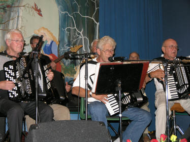 Deltar man på trekkspilltreff snapper man fort opp hva ordet ”buskspill” betyr. Dette innebærer blant annet at man henger seg på i samspill med andre som man måtte kjenne eller ikke kjenner fra før – for dermed å flytte disse over til ”kjente-gruppen”. I sommerhalvåret skjer dette gjerne utendørs, men i et nordisk vekslende klima har dette ført til at det kan være vel så praktisk at ”buskspill” foregår i innendørs former. ”Böskspelarnas Dragspelsklubb”, avdeling Norge, har like godt funnet et fast sted å utøve denne formen for trekkspilling – nemlig på Fjellvang i Stokke. |