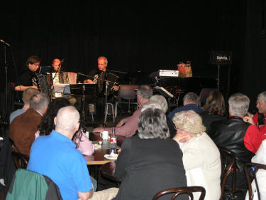 Søndag 23. april var ”Glenghuset”, det gamle KFUM-huset i Sarpsborg, omgjort til trekkspillkafé med telys på bordene og en noe dunkel belysning. Litt synd å stenge det etterlengtede vårlyset ute kanskje, men Einar Sandvik fra Borg trekkspillklubb kunne opplyse at vi må vente på flere kafétreff til høstmørket kommer. Dette var den tredje trekkspillkaféen som ble arrangert, og når en god ting ikke gjentas for ofte, er det mulig å holde interessen oppe blant publikum og de spillende. ”Glenghuset” i Sarpsborg så sin opprinnelse allerede i 1909 da tomten ble kjøpt for kr 800. Snart 100 år etter framstår husets brukere i dag som betydelige leverandører av kultur i Sarpborg. Huset brukes flittig av bl.a. foreninger, teatergrupper, stand-up og ikke minst av band siden scenen har bra med lys- og lydutstyr. |