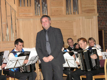 | Oslo Trekkspillklubb (OTK) har nylig feiret sitt 60 årsjubileum og er dermed Norges eldste trekkspillklubb. | OTKs dirigent Erik Bergene og arrangør av det meste av klubbens musikkframførelser. |