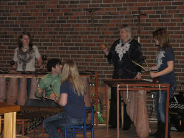Deretter var det over til mere glade toner fra Kulturskolens marimbaorkester med musikk fra Zimbabve. Elevene byttet instrumenter og plass mellom ”Wadene N’anga” og ”Shauriako” der sistnevnte tittel visstnok betyr ”heksedoktoren kommer også på besøk”.