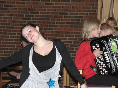 | Sofie i en frisk sambadans på kirkegulvet til Tico Tico. |
