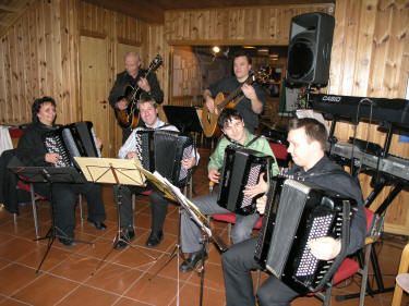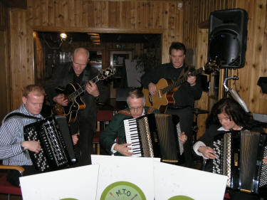 Mer dans og fest ble det til langt på natt etter en liten forflytning til Moss Tennisklubbs lokaler på Jeløya. Her spilte nemlig MSK, deler av Halden Trekkspillklubb, Moss Trekkspillorkester, Gamle Aker Spelemannslag, Nonstop og Magne Saure på keyboard opp til dans. Om det ikke ble hopprenn etter nyttårskonserten hadde man uansett alle muligheter for å fullføre nyttårsforsettene med mere trim og la dansen fremkalle liv i uante muskler....... |