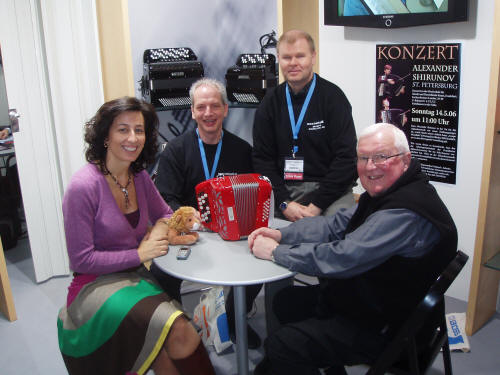 Dennis Novato fra Trieste i Italia, nr. tre f.v., er verdensmester på ”stayerische akkordeon”, og demonstratør for Lanzinger. |