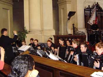 | Castletown accordion orchestra Navan fra Irland vant klassen for junior akkordion orkestre. | East Antrim Accordion Orchestra deltok også på kirkekonserten i St. Nicholas church.. |
