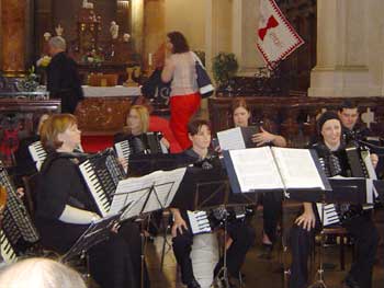 av orkestrene var på ca. 30 trekkspill. Siden klubben deltok i både klassisk musikk og i underholdningsmusikk var det begrenset tid for å høre på de andre, men vi fikk i hvert fall gleden av å høre et serbisk orkester hvor samtlige utøvere spilte utenat (!), samt et russisk orkester viste også bredde og virtuositet av høy klasse.