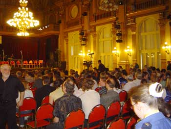 | Endelig kom lørdagen og det var en spent trekkspillklubb som etter et par timers øving hver dag der nede var klare for å gjøre sitt beste i denne pompøse og svære konsertsalen i the National House. Salen var full av interesserte tilhørerer hvor nok mange stammet fra de mange orkestrene som deltok. Oslo Trekkspillklubb, med sine 13 trekkspill + dirigent i klassen for klassisk musikk (i underholdningsmusikk hadde de også med bass, gitar og slagverk) var et av de absolutt minste orkestrene. Det største